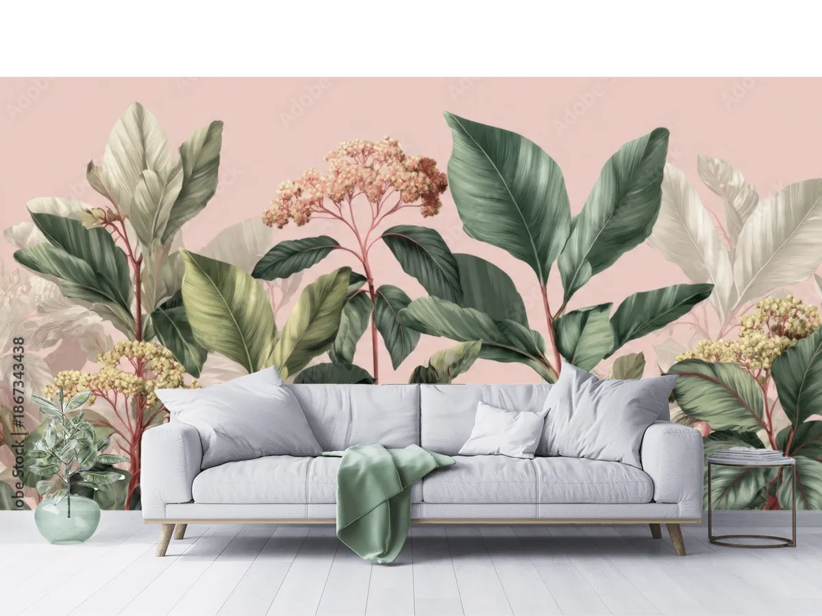 Descubre el encanto irresistible de nuestro fotomural botánico tropical, la opción preferida en México para quienes desean una decoración de sala moderna y vibrante. Este mural de pared captura la esencia de una selva soñada con hojas exuberantes, colores sutiles y detalle artístico, ideal para renovar cualquier espacio con elegancia natural. El mural botánico tropical se ha convertido en tendencia para quienes buscan papel tapiz decorativo en hogares, oficinas y comercios por su versatilidad y acabado premium.
