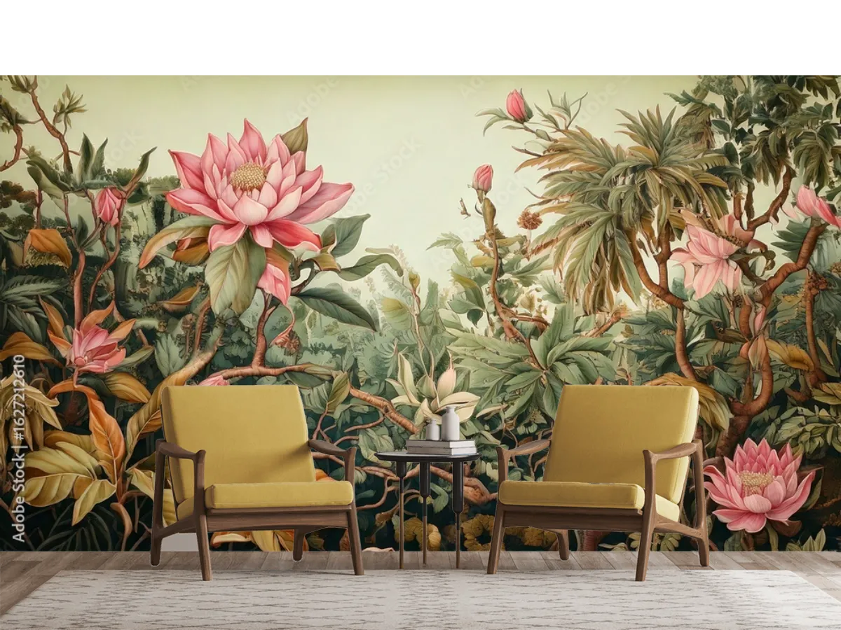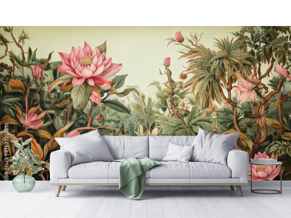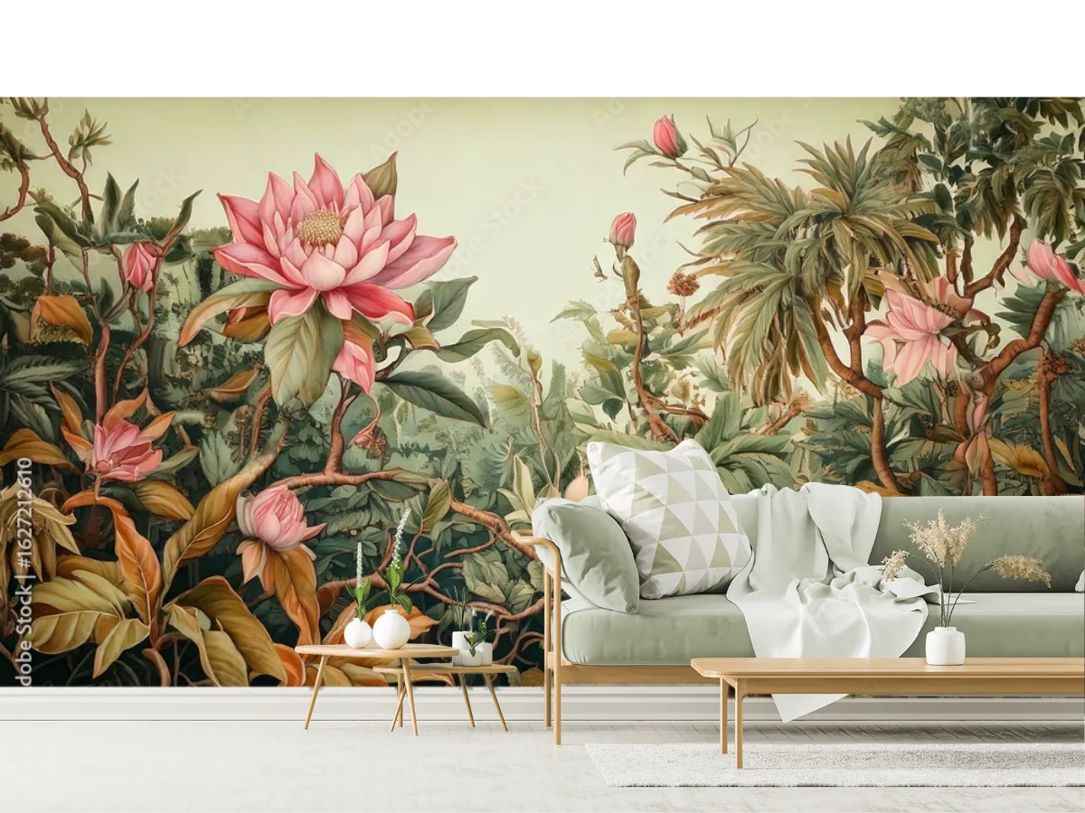 Dale vida espectacular a tu sala con el mural Jungle Lotus. Elige el material ideal y disfruta de naturaleza exótica en tu hogar, ¡pide el tuyo ahora!
