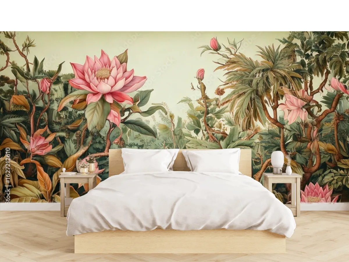 El mural de pared Jungle Lotus se adapta perfecto a diferentes ambientes: ideal para salas donde funcione como punto focal, recámaras que buscan un toque sereno y natural, estudios creativos o consultorios que desean transmitir tranquilidad. También es excelente opción para spas, restaurantes, espacios de yoga o boutiques con estilo exótico y botánico. Combina de maravilla con decoración bohemia, tropical, minimalista o chic naturalista.