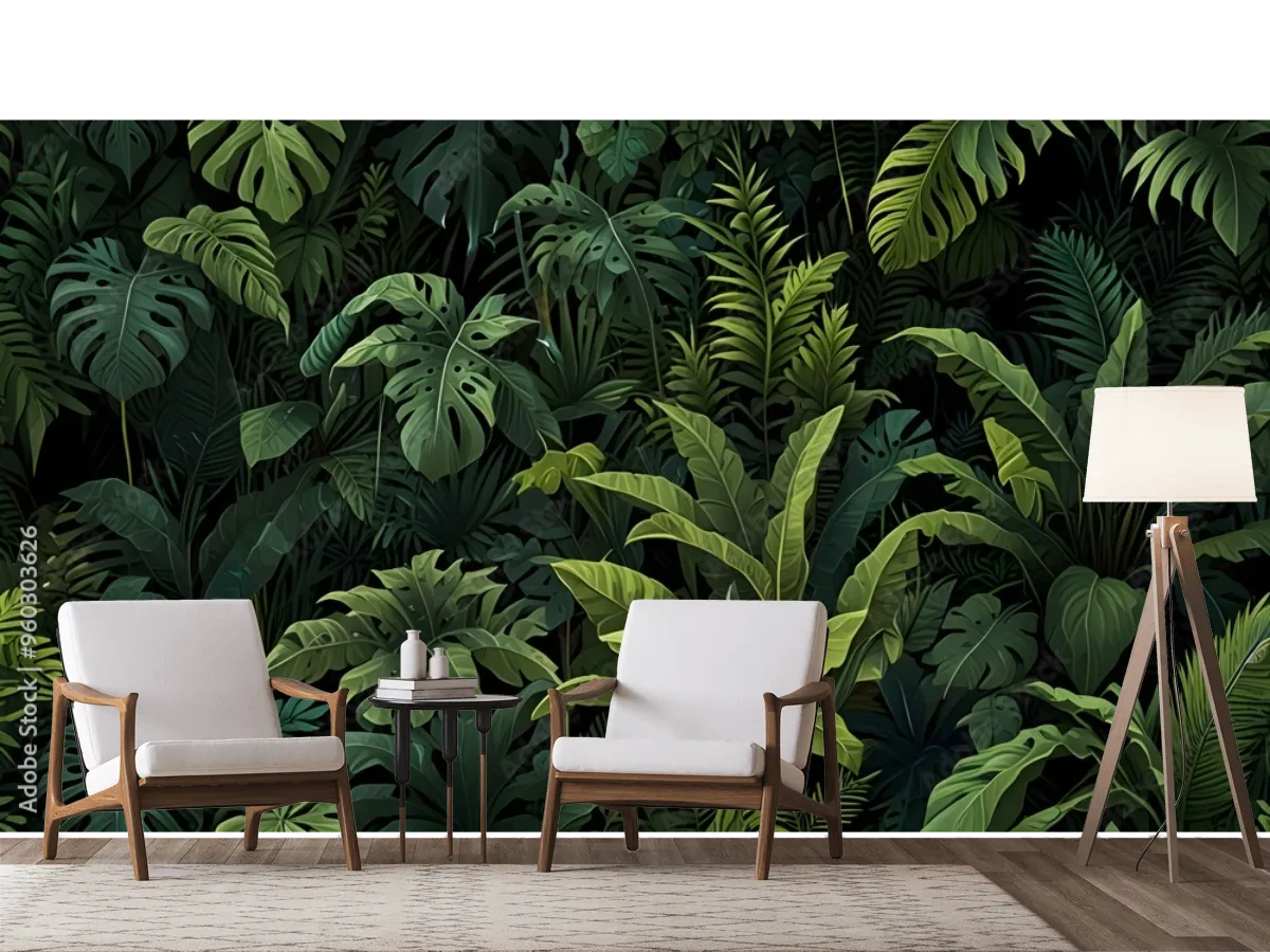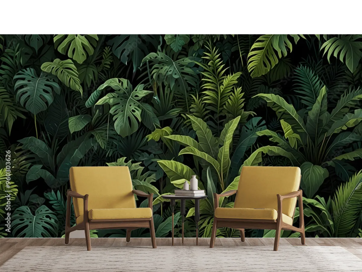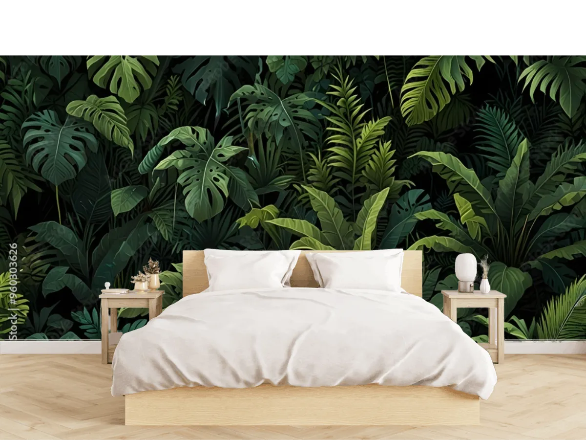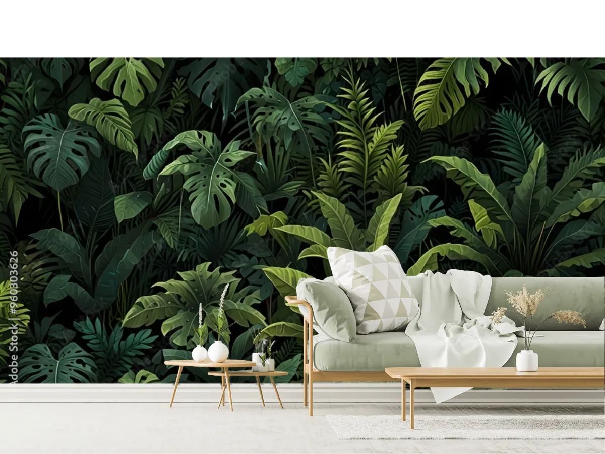 Haz vibrar tus espacios con el mural Hoja Viva, inspirado en la selva tropical. Renueva tu sala o recámara y disfruta de una atmósfera natural única. ¡Atrévete a transformar tu hogar!