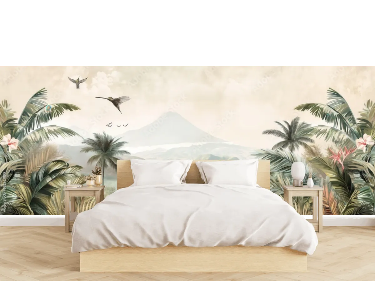 Transforma tu sala o recámara con el mural Edén Tropical, que fusiona naturaleza y arte para ambientes únicos. ¡Instálalo fácilmente y renueva tu decoración hoy!