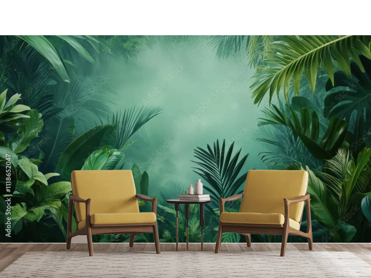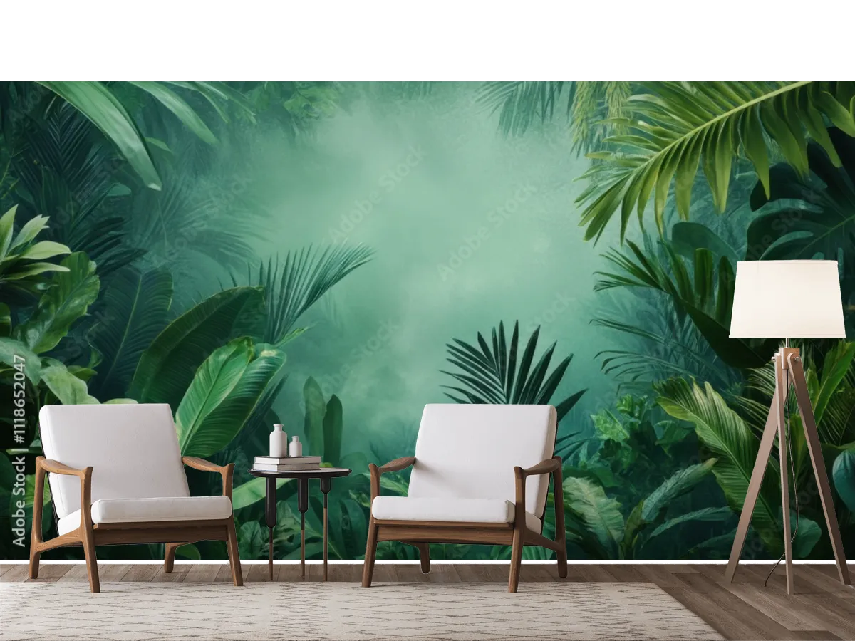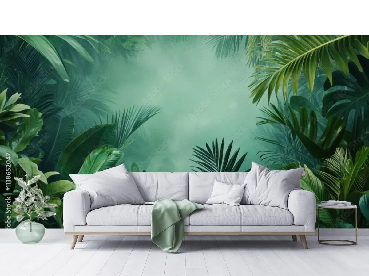 Convierte tu sala en un paraíso tropical con el fotomural Mural Selva Esmeralda. Da vida y frescura a cualquier ambiente, ¡ordénalo ahora!