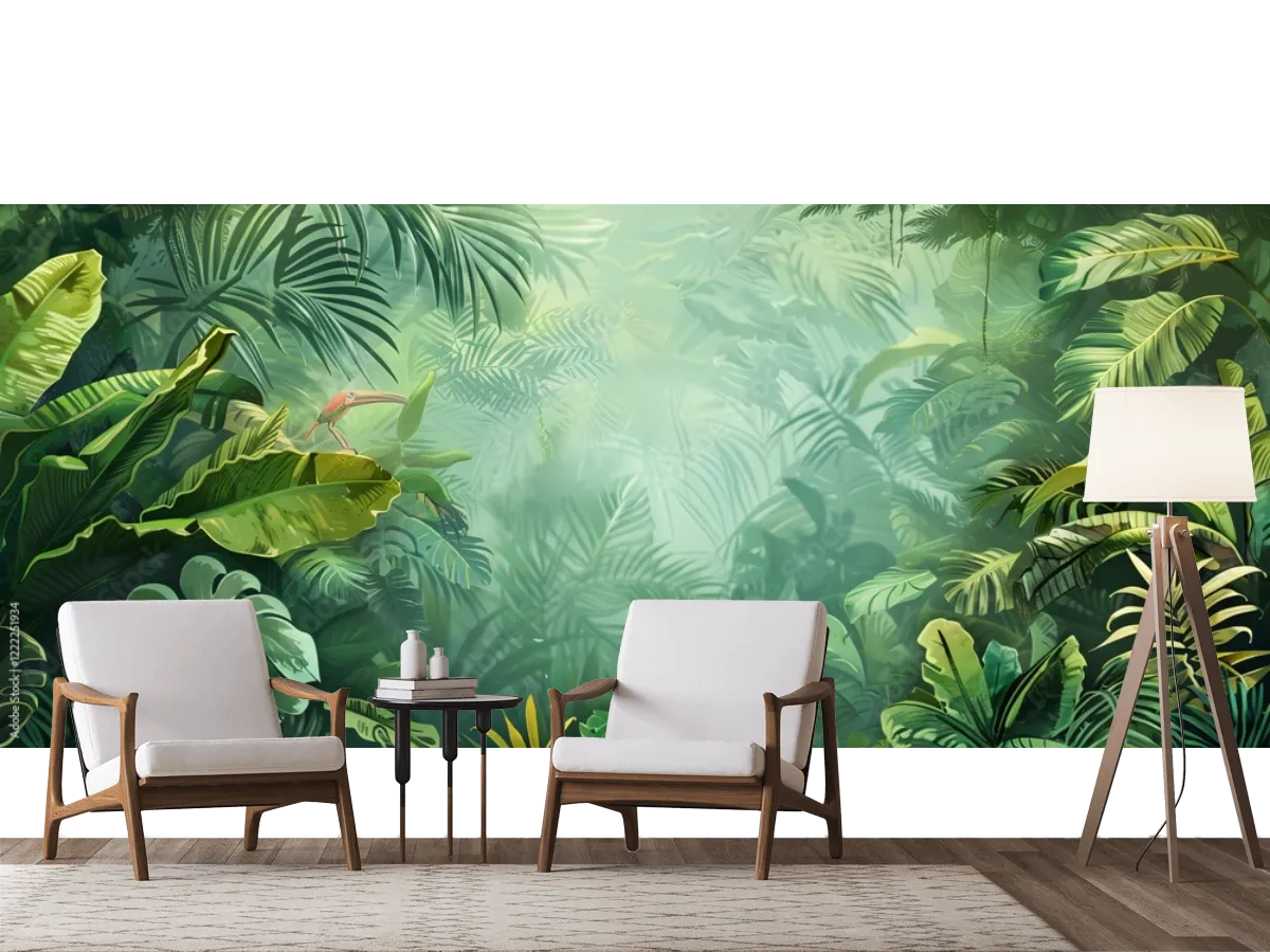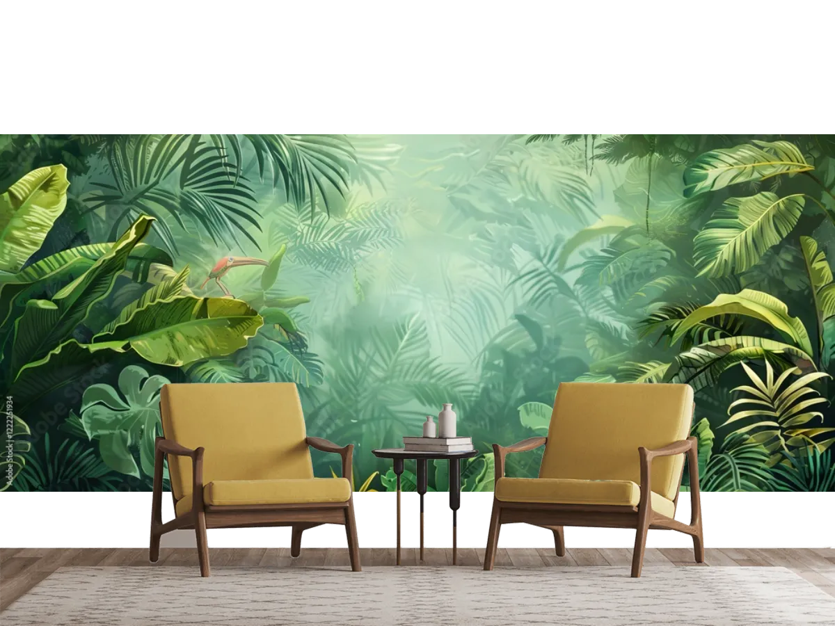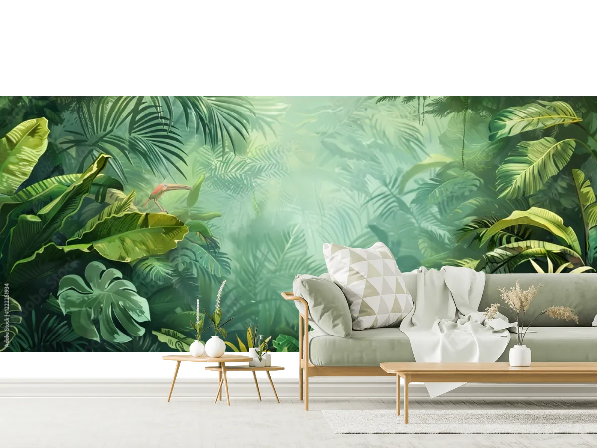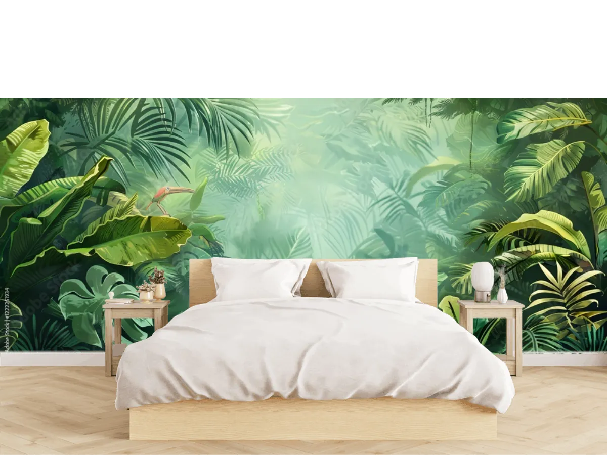 Transforma tu hogar con el mural Selva Mistica Tropical. Ideal para crear ambientes frescos, verdes y vibrantes. ¡Hazlo tuyo y eleva tu espacio hoy!