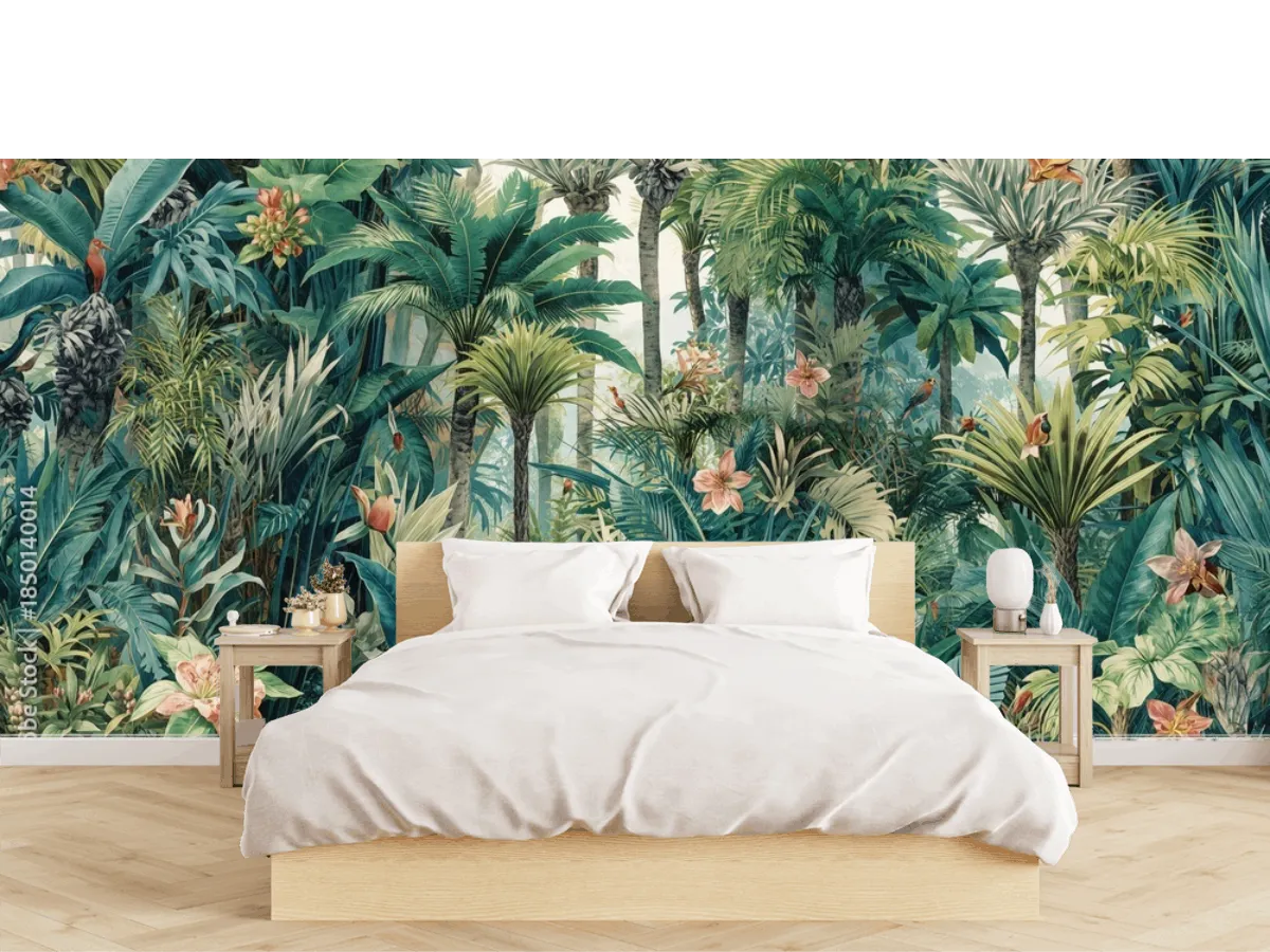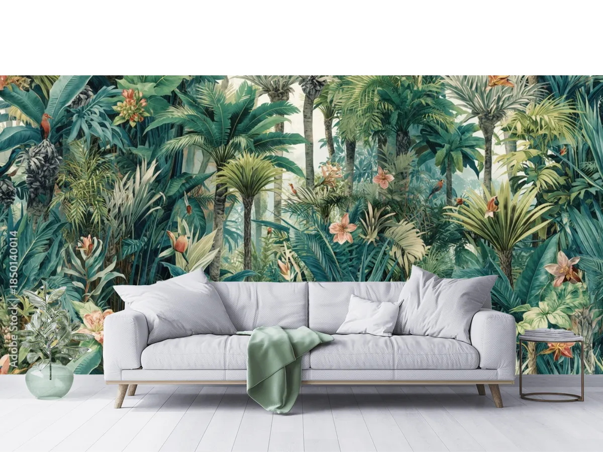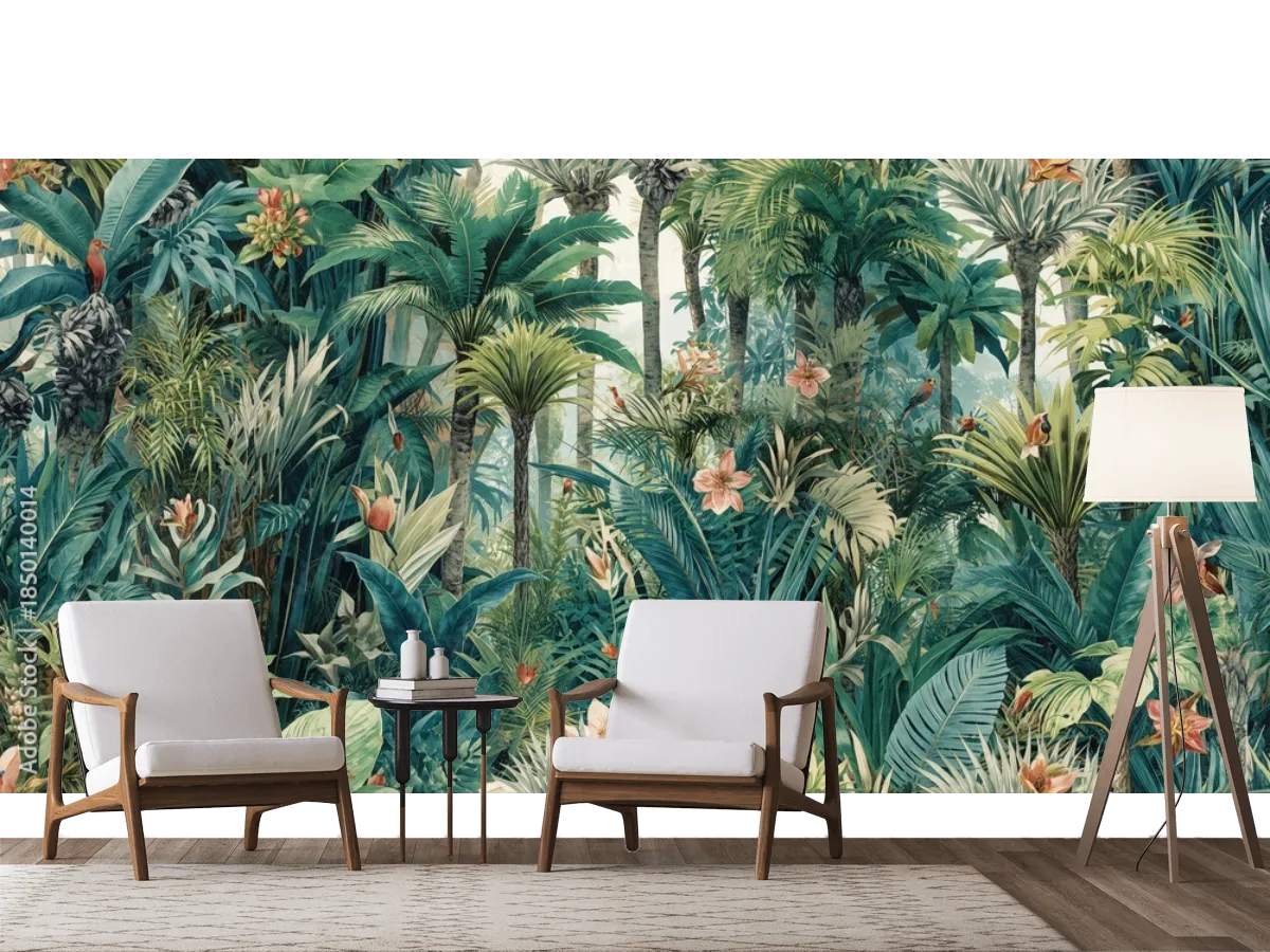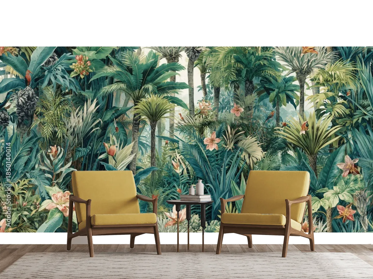 Elige el fotomural 'Esplendor Tropical', una joya inspirada en la belleza salvaje de la jungla, ideal para quienes buscan realzar cualquier ambiente con un mural de pared envolvente, moderno y de máxima calidad. Atrévete a cambiar la atmósfera de tu sala, recámara o estudio con este mural de diseño exclusivo y acabado premium. Elige entre vinil arquitectónico, papel tapiz decorativo liso, tapiz texturizado, contract o para superficies rugosas: ¡tu espacio lucirá espectacular!