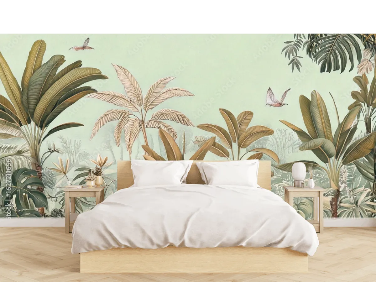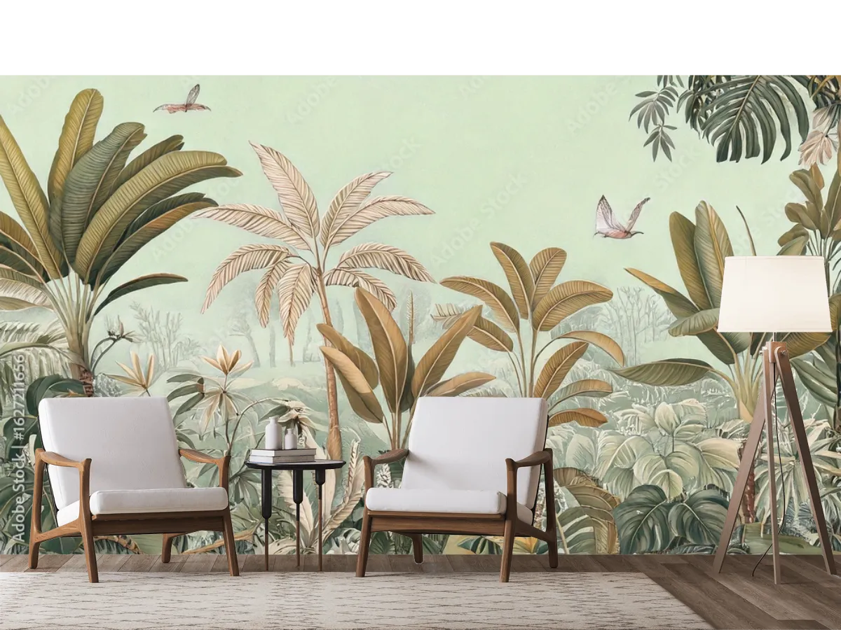 El modelo Travesía Serena es perfecto para decorar salas principales, realzar cabeceras de recámaras, dar vida a estudios, salones de yoga y consultorios. Su diseño de selva tropical en tonos tierra y verdes suaves lo hace muy versátil para estilos como boho chic, tropical moderno, orgánico minimalista o incluso ecodiseño contemporáneo. También es una excelente opción en restaurantes, cafeterías o boutiques que buscan una atmósfera vibrante y relajante.